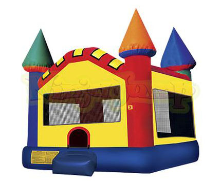 This large Castle moonwalk is 360-degrees of brilliant and joyful regal fun for all young royalty! This majestic moonwalk is fit for any king or queen, with colors of blue, green, red, yellow and orange, along with four tall spires to make any party a success.