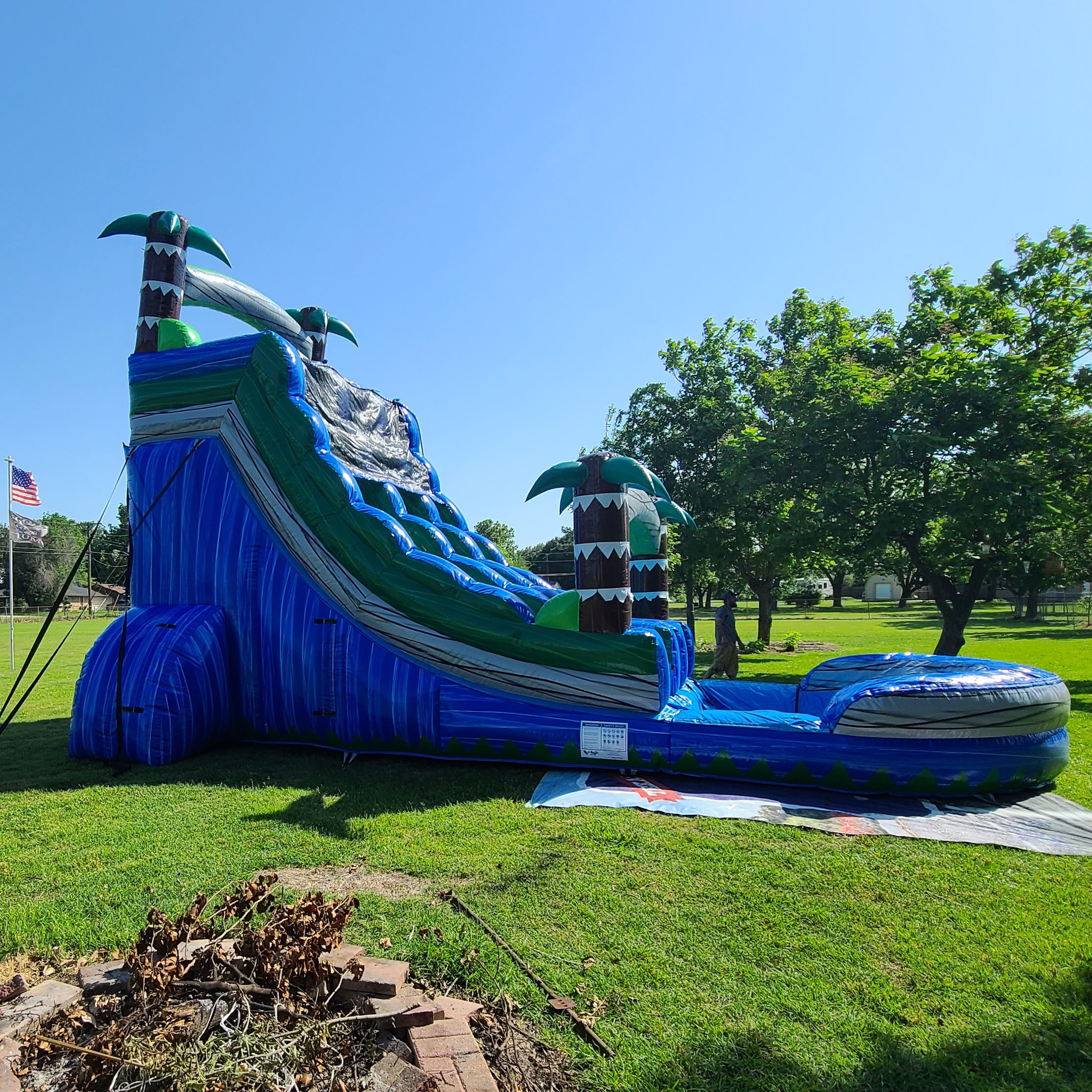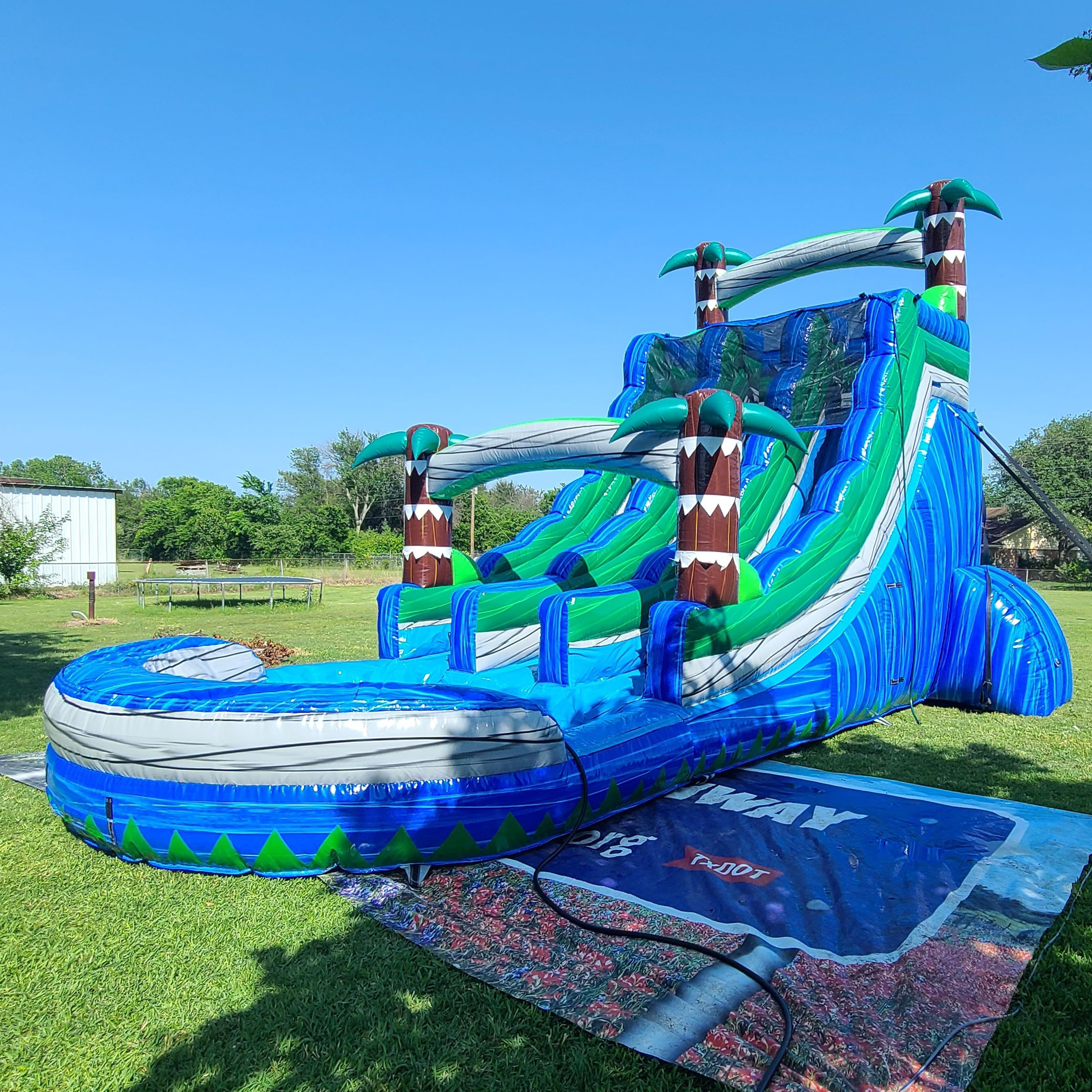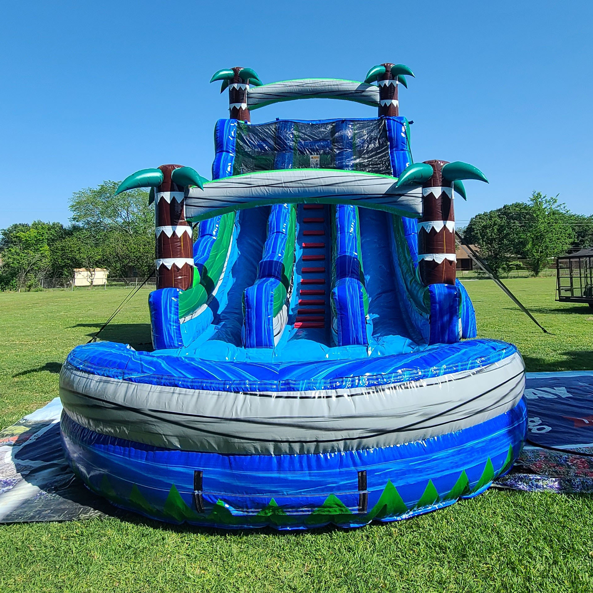 The more the merrier on the 20ft Blue Crush inflatable water slide! This inflatable is great to entertain a lot of kids without taking up a lot space because of the dual water slides. This slide is a crowd pleaser because of it’s height offering a fast slide down for that perfect splash in the pool below. Reserve this slide today to ensure availability for your next party!